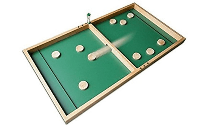 Avec le passe-trappe, utilisez l’élastique pour envoyer le plus vite possible tous les palets dans le camp adverse ! Un jeu d’adresse incontournable à partir de 4 ans.
