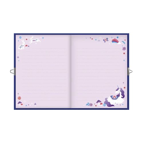 Les petits secrets des licornes sont bien gardés avec ce carnet secret pour les enfants à partir de 6 ans ! Avec leur carnet secret de 128 pages, ils peuvent dessiner de beaux arcs-en-ciel ou écrire tout ce qu’il leur passe par la tête. Ça n’est pas seulement un journal intime, c’est une activité créative idéale pour s’exprimer sans limites grâce aux pages lignées et illustrées ! Et pour que tous les secrets des enfants soient impénétrables, un cadenas en forme de cœur et son jeu de 2 clés complètent le carnet. Au fil des pages, créatures magiques et licornes fantastiques garderont précieusement toutes les petites confidences des enfants. Écrire dans un petit carnet est un super moyen d’exprimer sa créativité, sa personnalité, et de développer son imagination ! Les enfants peuvent alors décrire leur journée passée à jouer les licornes, tout comme leur journée à l’école, selon leur humeur du moment. Plongez dans l’univers de la collection “Dreamland”, des kits de loisirs créatifs et de papeterie pour enfant sur le thème des licornes, dans un style coloré original. Pour des après-midis créatifs et fantastiques !