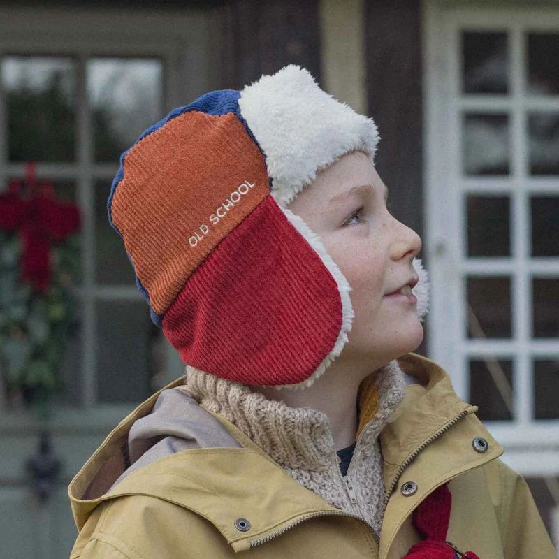/ Chapka tricolore velours Bleu/Caramel – 3/6 ans