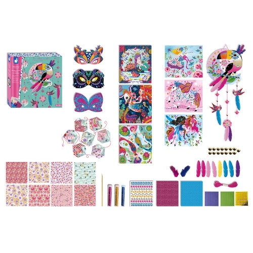 Gratter, coller, plier … Voici un coffret renfermant de nombreuses activités de loisir créatif pour les enfants à partir de 7 ans ! On y retrouve tout le nécessaire pour s’amuser autour du thème des jolies décorations : 3 masques à gratter, idéal pour développer la motricité fine, un attrape-rêve et 1 guirlande en origami diamant pour décorer sa chambre, 6 tableaux colorés à customiser avec des mosaïques ou des paillettes. Ce kit complet d’art créatif est idéal pour développer la dextérité et la créativité. Il permet d’occuper de manière intelligente les enfants qui pourront se concentrer pendant un bon moment sur une activité dont ils seront fiers. C’est également une super idée pour amuser les copains lors des fêtes d’anniversaire !