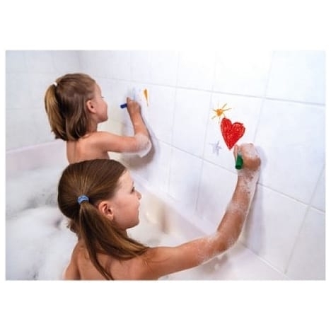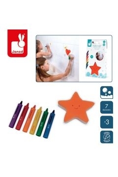 Grâce aux crayons, votre enfant pourra colorier la baignoire à l’infini, nettoyer et ensuite effacer grâce à la belle éponge en forme d’étoile ! Le set contient : une éponge, 6 crayons.