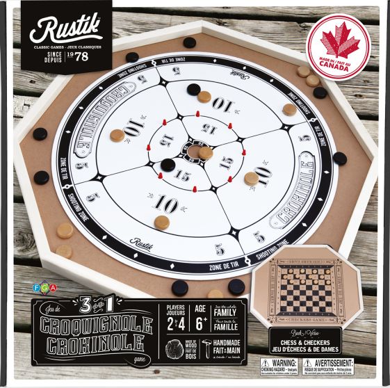 Un jeu familial unique ! Rappelant le jeu de la pichenotte, le but de la Crokinole est de marquer le plus de points possible en faisant atterrir les disques dans les zones payantes du plateau de jeu. Mais attention, quelques règles augmentent la complexité du jeu, il faut donc être stratégique. Crokinole est un jeu de société de dextérité avec des éléments de jeu de palets et de curling réduits à la taille d’une table. Le but du jeu est de gagner des points en lançant des disques dans les anneaux les plus marqués du tableau. Génial pour tout la famille!