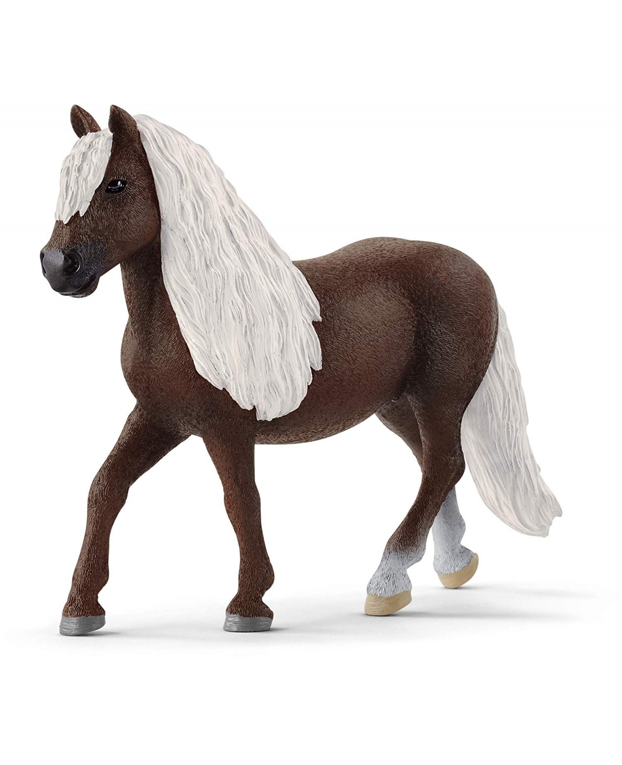 Le cheval de trait de la Forêt Noire est petit de taille mais puissant et agile. Bien que de tempérament équilibré et doux, il est très vif et déborde d’énergie. La crinière et la queue de cette race est toujours de couleur blond clair, comme celles de la jument Forêt-Noire de schleich® FARM WORLD. Elles forment un joli contraste avec la couleur sombre et alézane de sa robe.