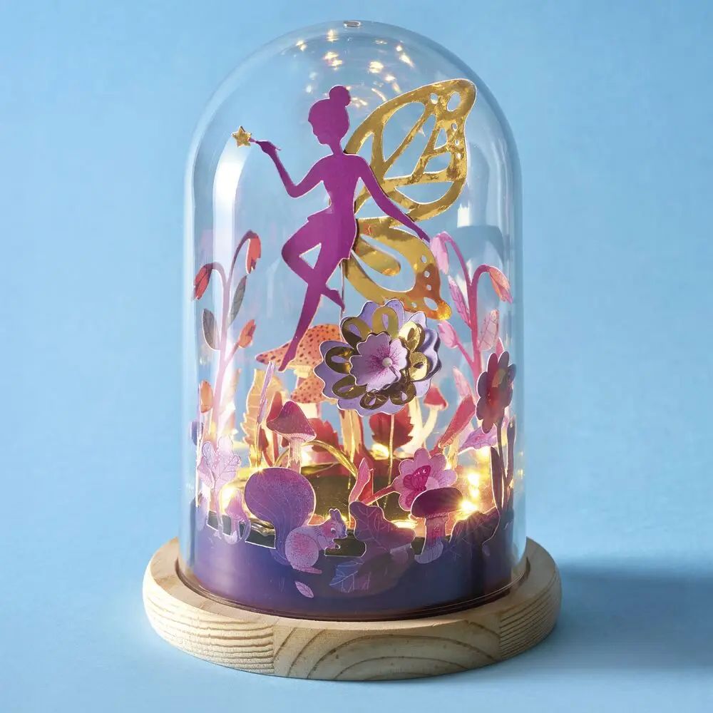Voici une activité créative qui permettra de réaliser une magnifique décoration lumineuse pour sa chambre ! Elle sera du plus bel effet grâce à sa silhouette de fée bien mise en valeur sous cette cloche transparente. Le coffret créatif contient une cloche