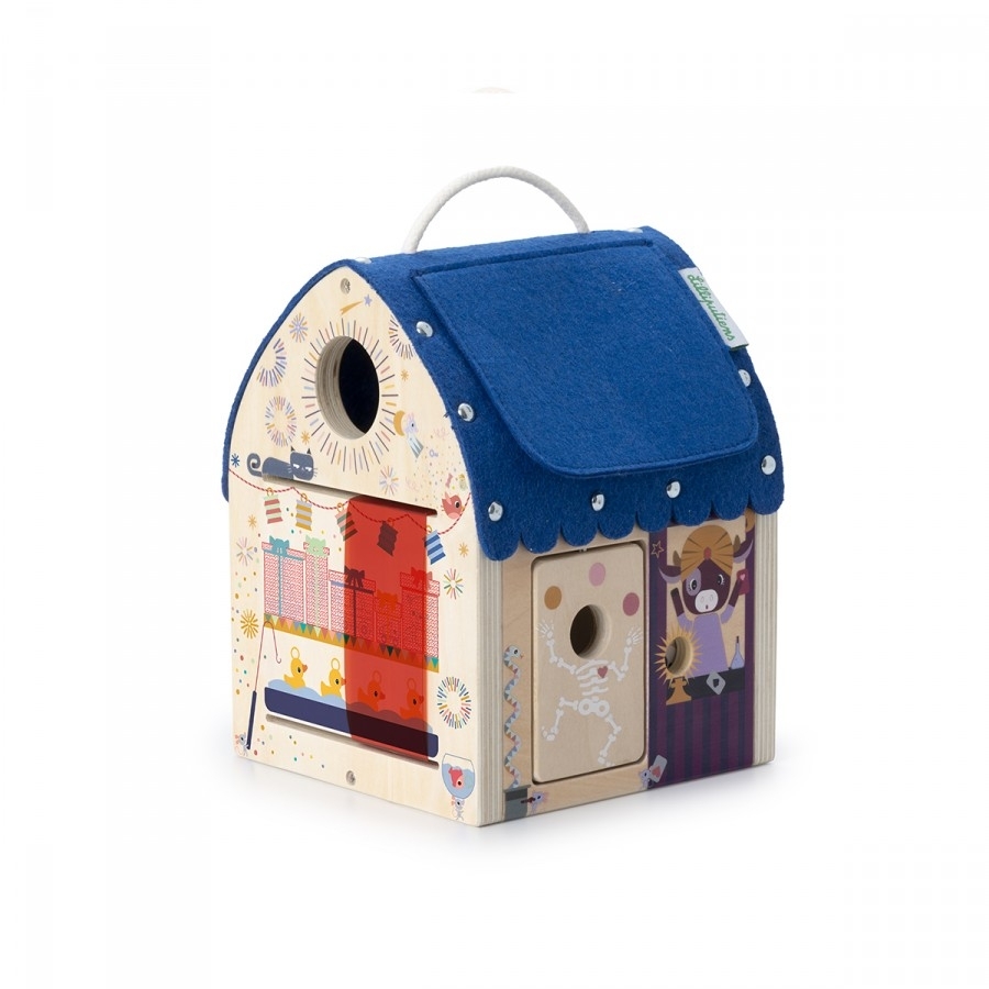 Joe le magicien t’invite chez lui. Il y a tant de choses à découvrir de chaque côté de cette maisonnette en bois magnifiquement illustrée. Les illusions d’optique sont un vrai régal pour les petits yeux et stimulent l’imagination de l’enfant.