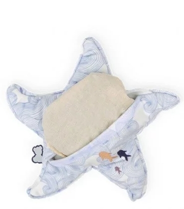 Cette peluche bien-être en forme d’étoile de mer est la peluche Kaloo idéale pour apaiser bébé de ses maux. Déhoussable, elle contient une poche amovible. La poche garnie de billes en argile et fleurs de lavande est à placer au micro-ondes ou au congélateur pour un effet chaud ou froid. L’accès à la poche est sécurisé grâce à un système de velcros pour une utilisation sans risques. En fourrure extra douce, elle est idéale pour soulager les maux de bébé dès la naissance. L’étoile de mer est rehaussée d’un imprimé “Danse des vagues” et de broderies de poissons multicolores qui rappellent le calme des profondeurs marines et l’onde de douceur et de bien-être apportées par la peluche bien-être. Sans poche, la peluche étoile de mer à l’expression apaisante peut-être utilisée comme doudou réconfort. Veuillez retirer la poche avant lavage en machine. Mode d’emploi inclut à l’intérieur de la peluche. La bouillotte a de nombreux bienfaits. La lavande aide à la relaxation et à l’endormissement grâce à ses propriétés calmantes et apaisantes.