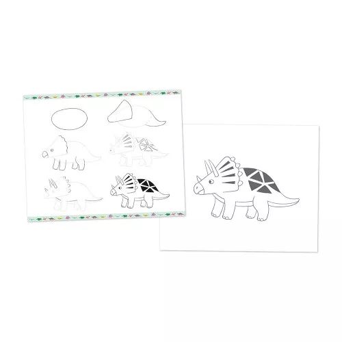 Dessinez des dinosaures en quelques coups de crayons ! Avec ce coffret créatif spécial dessin, les enfants dès 6 ans apprennent facilement à reproduire 20 modèles étapes par étapes. Idéal pour développer sa dextérité, maîtriser son tracé et ainsi apprendre à dessiner les éléments de leurs univers préférés comme des pros ! Ce kit pour apprendre à dessiner transporte les enfants dans le monde des dinos, où ils apprennent pas à pas à dessiner ces créatures fantastiques. En plus des modèles, le coffret contient : 25 feuilles blanches, 1 crayon de papier mine HB ainsi que 1 gomme. Chaque modèle est décomposé, et tout le nécessaire est fourni pour que les petits puissent s’exercer au dessin et se perfectionner : bientôt, ils sauront reproduire les dinosaures sans modèles, et peut-être leur apporteront-ils des modifications en laissant parler leur imagination ! Même un débutant en dessin prendra plaisir à reproduire les modèles, car c’est finalement très accessible lorsque l’illustration est décomposée en plusieurs étapes illustrées. En quelques coups de crayon, de fantastiques dessins de dinosaures apparaissent ! C’est une vraie satisfaction pour les enfants, qui profitent d’une activité stimulante et créative. Concentration et précision sont de mise pour apprendre à dessiner, puis avec la confiance vient l’envie de personnaliser les dessins … Ou de dessiner toujours plus ! Ce kit de loisir créatif dessin pour enfant fait partie de notre gamme « Step By Step Drawing », une série de coffrets permettant aux enfants de 6 et 7 ans d’apprendre à dessiner pas à pas.